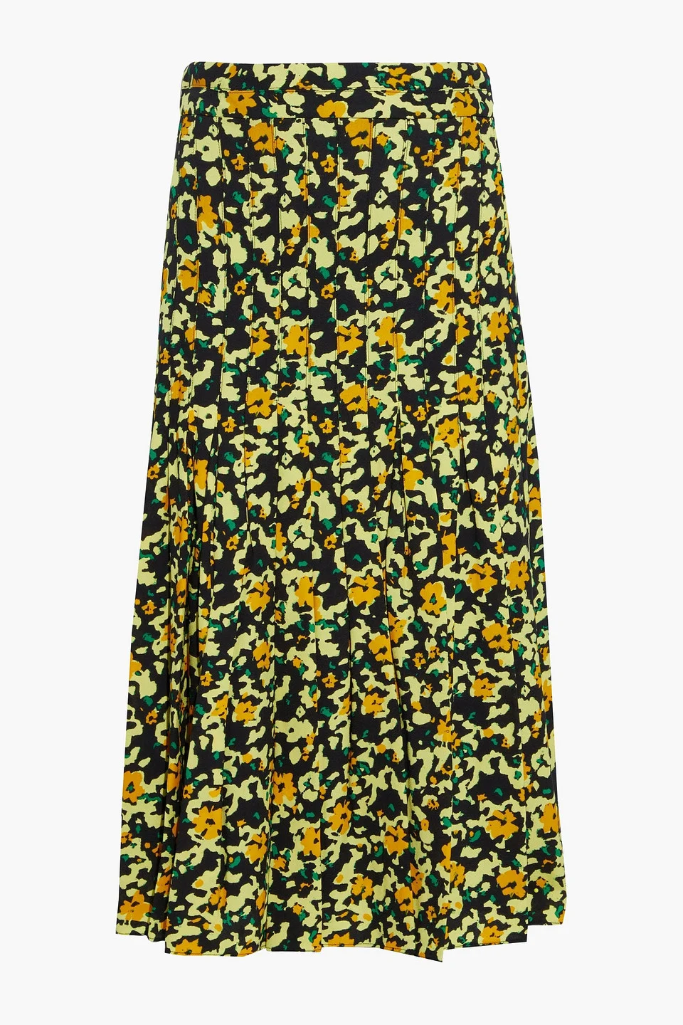Pleated printed crepe midi skirt