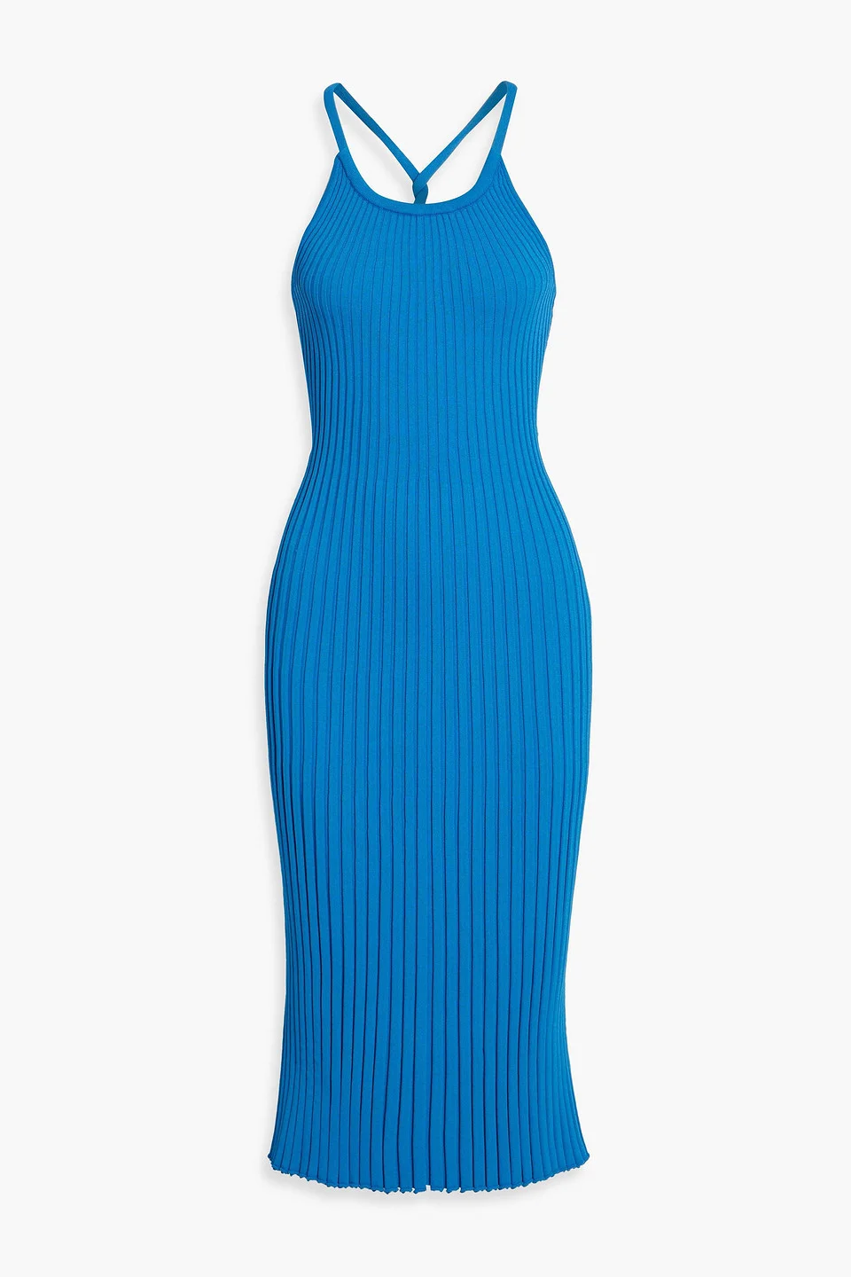 Dress ribbed-knit crossover straps ties at back mid-weight knit dry clean imported 82% Viscose 10% Polyamide 8% Polyester Product Code 46376663162883102