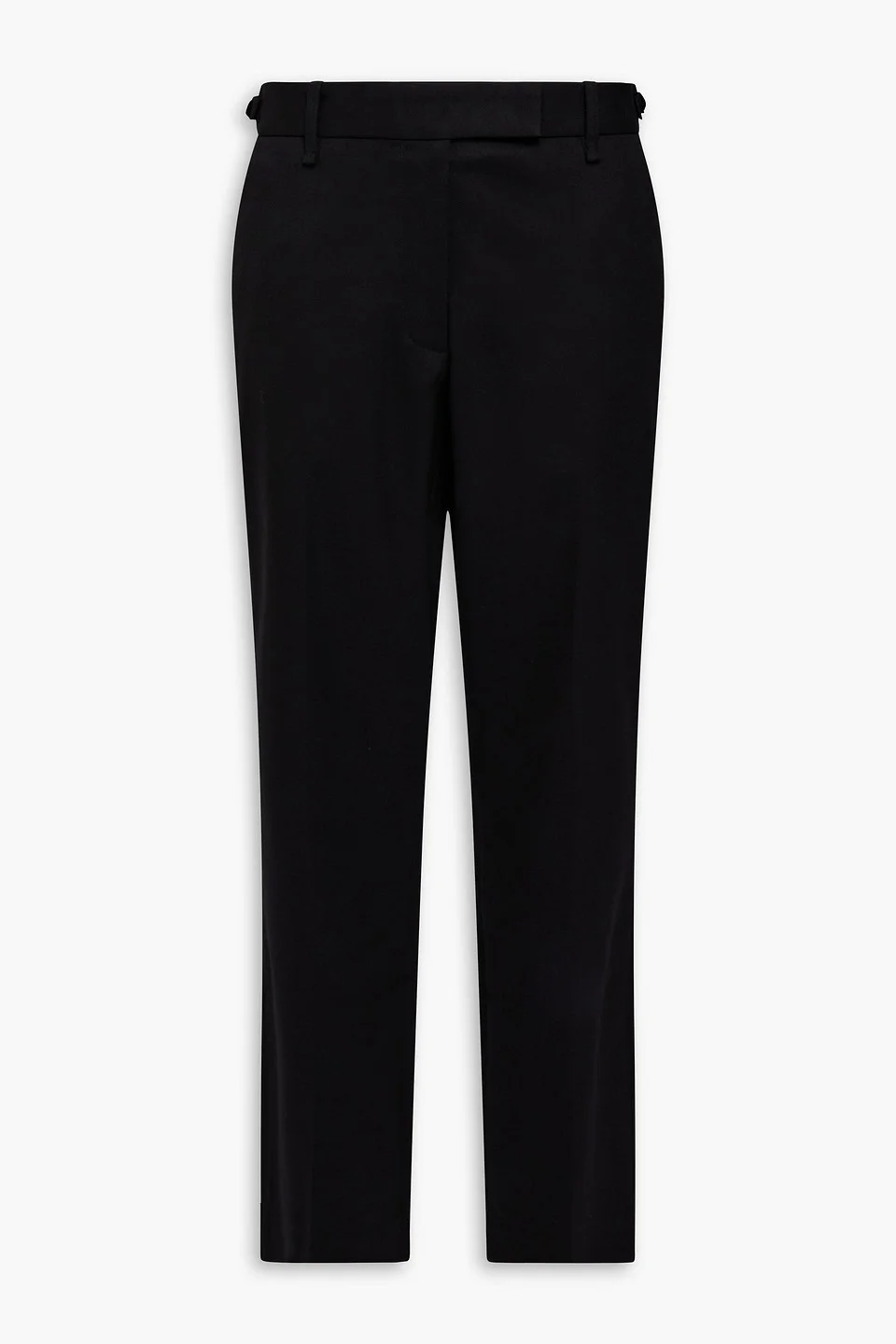 Straight-leg pants wool-blend twill side slant pockets back welt pockets belt loops buckled waist tabs high-rise cut concealed hook, button and zip fastening at front mid-weight, stretchy fabric dry clean imported 98% Virgin Wool 2% Elastane Product Code 46376663163023156
