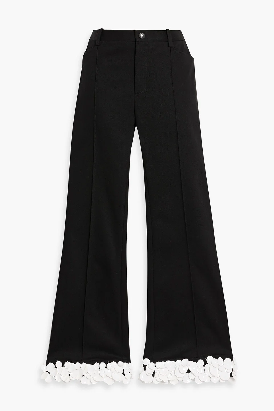 Flared pants cotton-blend twill sequins belt loops high-rise cut snap and concealed zip fastening at front mid-weight, slightly stretchy fabric dry clean made in italy 98% Cotton 2% Elastane Product Code 46376663163095010