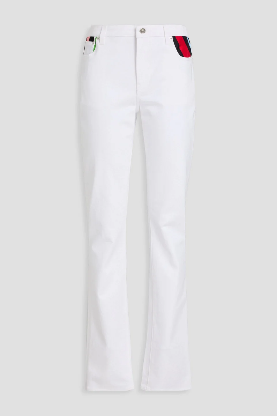 Straight-leg jeans denim silk trims printed trims high-rise cut five pockets button and concealed zip fastening at front mid-weight, slightly stretchy fabric dry clean made in italy 99% Cotton 1% Elastane 0% Silk Product Code 1647597360538502