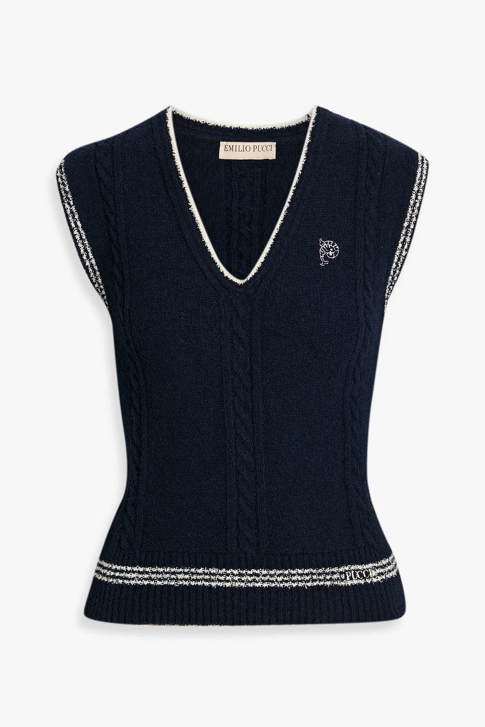 Vest cable-knit cotton-blend embroidered striped trims slips on mid-weight knit dry clean made in italy 70% Cotton 30% Polyamide Product Code 46376663163095036