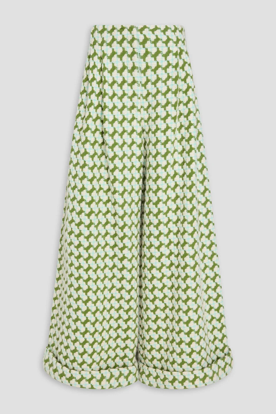 Wide-leg pants jacquard wool-blend pleated side welt pockets high-rise cut folded cuffs concealed hook and zip fastening at front mid-weight, non-stretchy fabric dry clean made in italy 63% Wool 14% Alpaca wool 11% Polyamide 7% Acrylic 5% Virgin Wool Product Code 46376663163051636