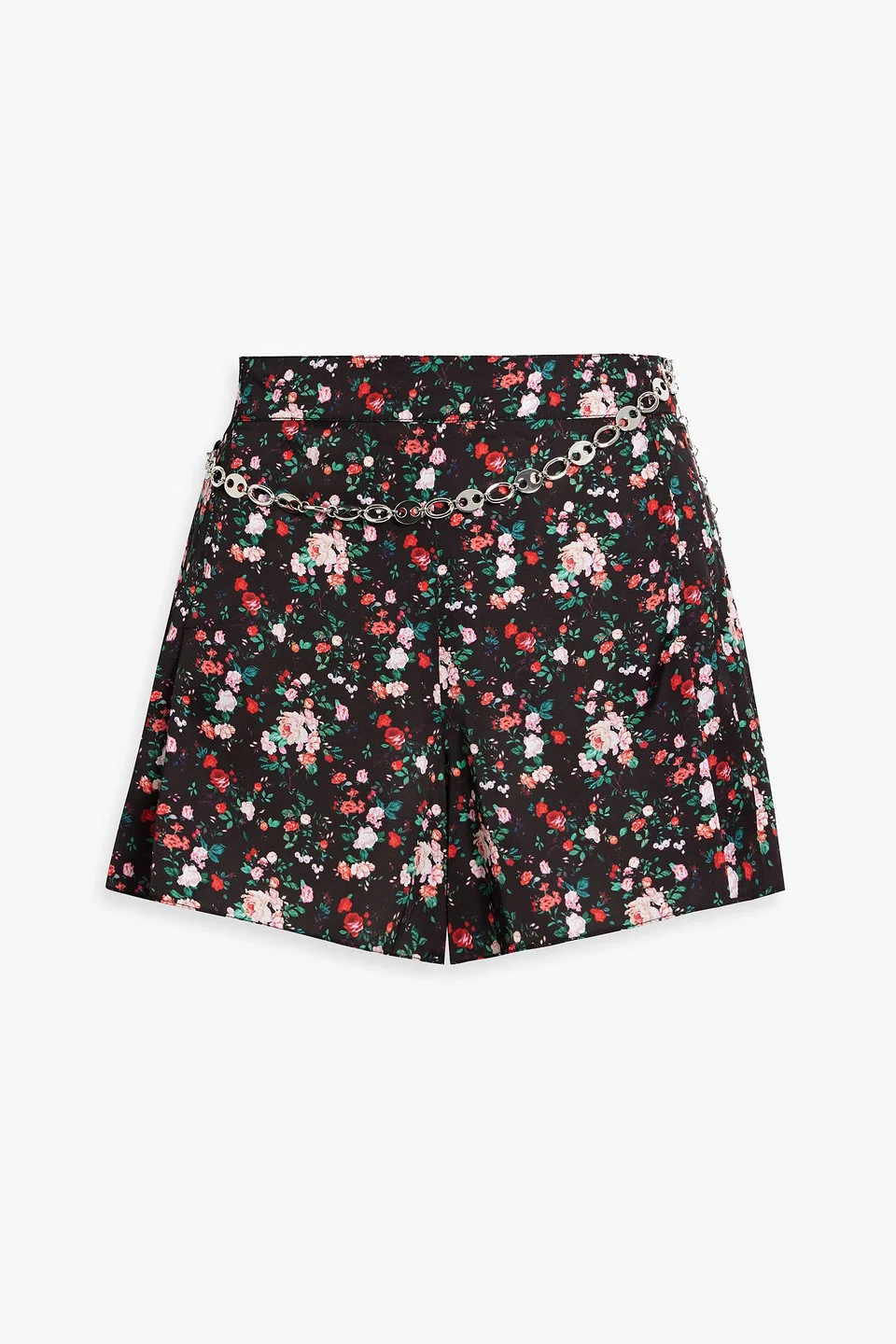 Shorts floral-print crepe de chine chain-embellished pleated high-rise cut concealed hook and zip fastening at side lightweight, non-stretchy fabric machine wash or dry clean imported 100% Polyester Product Code 1647597351611450