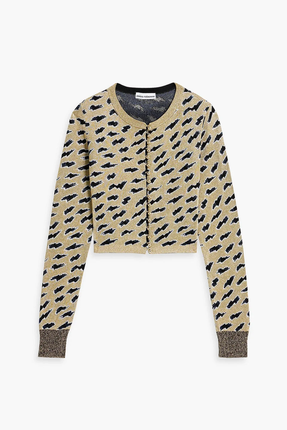 Cardigan metallic jacquard-knit cropped ribbed trims button fastenings through front mid-weight knit hand wash imported 52% Viscose 18% Wool 14% Polyester 10% Cupro 6% Metallic Polyester (Mp) Product Code 1647597359689190