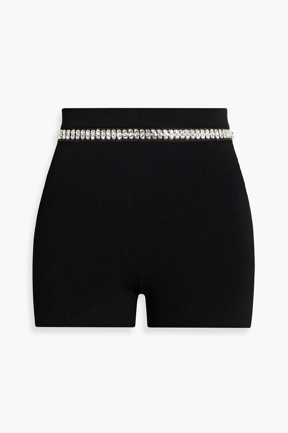 Shorts ribbed-knit crystals concealed hook and zip fastening at side mid-weight knit dry clean imported 66% Viscose 20% Elastane 14% Polyester Product Code 1647597345015913