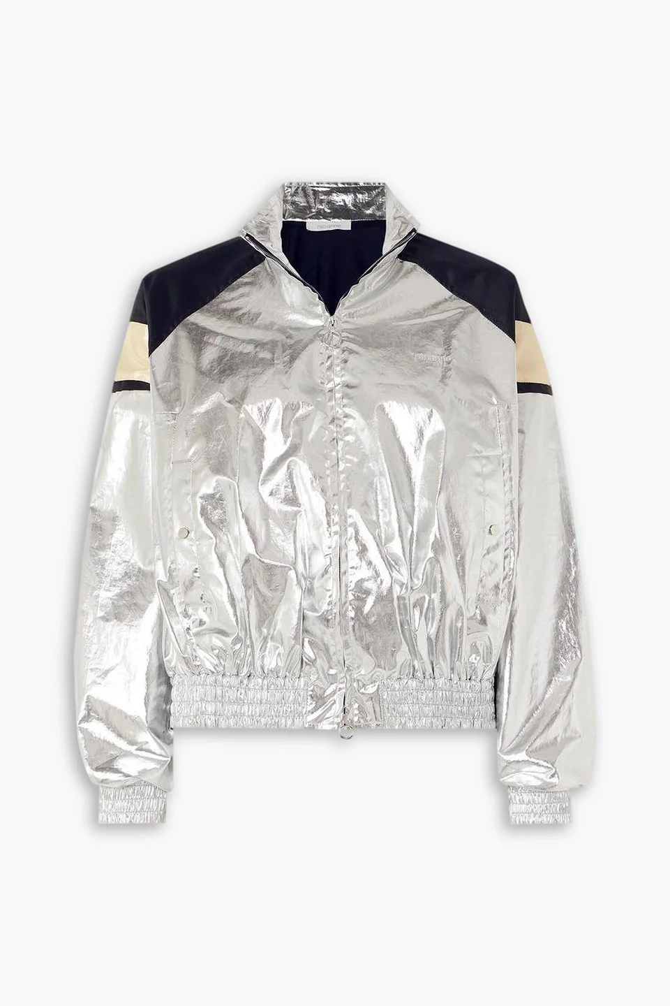 Jacket metallic coated cotton-blend embroidered logo satin trims two front slant pockets two-way zip fastening through front mid-weight, non-stretchy fabric dry clean made in italy 76% Cotton 24% Polyurethane Product Code 1647597357846567
