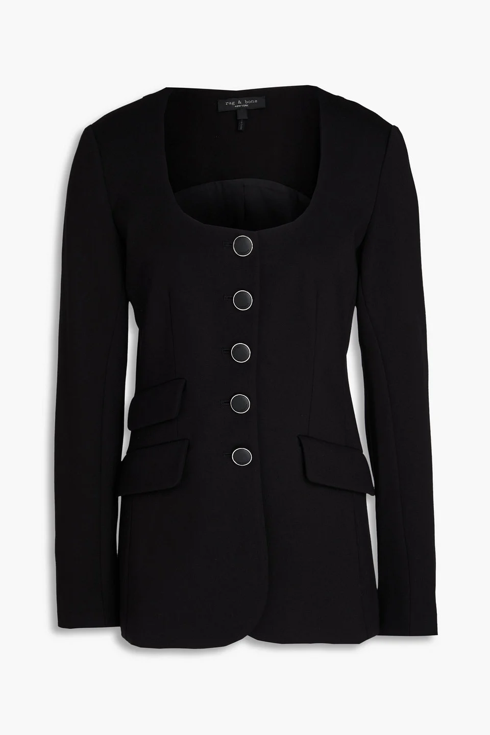 Blazer jersey buttoned cuffs front flap pockets button fastenings through front fully lined mid-weight, stretchy fabric machine wash imported 66% Viscose 30% Polyamide 4% Elastane Product Code 46376663163018583