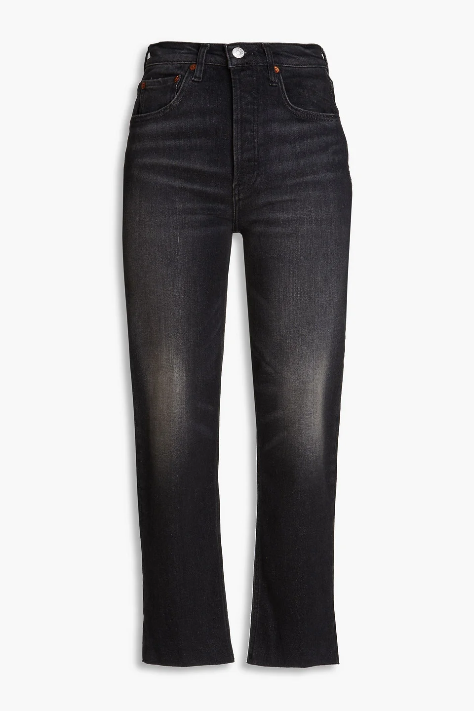 Straight-leg jeans faded denim cropped high-rise cut multipockets partially concealed button fastenings along front raw-cut cuffs stretchy fabric mid-weight fabric machine wash or dry clean imported 97% Organic Cotton 3% Recycled elastane Product Code 1647597322404792
