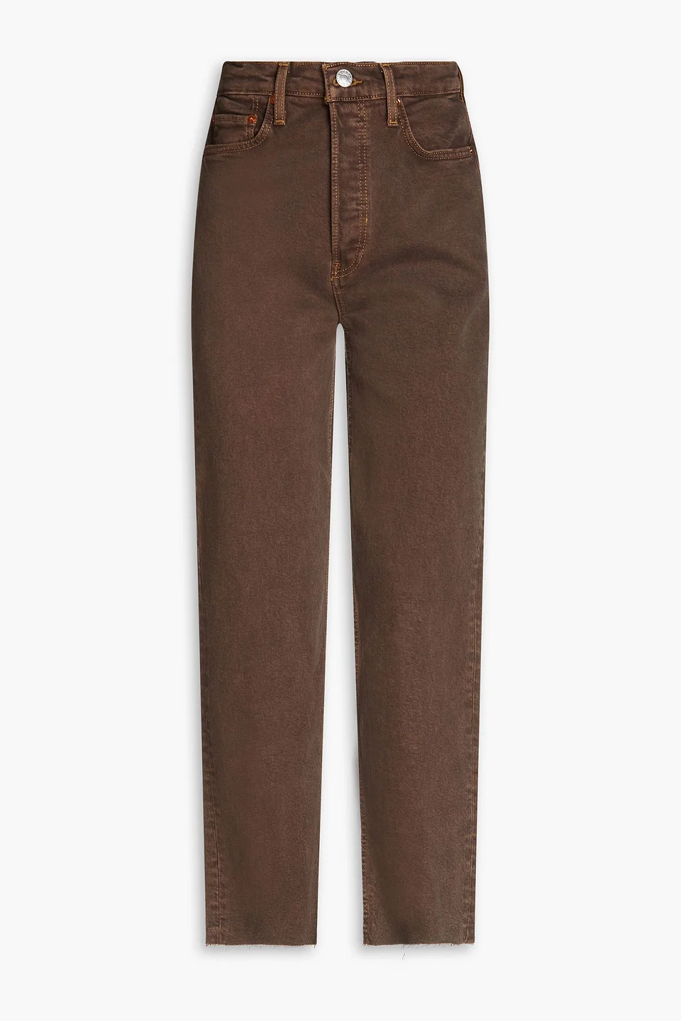 Straight-leg jeans denim cropped belt loops high-rise cut partially concealed button fastenings along front frayed cuffs mid-weight, slightly stretchy fabric machine wash imported the unique distressing and finish of each re/done style may differ slightly to that pictured 98% Cotton 2% Elastane Product Code 1647597322714682