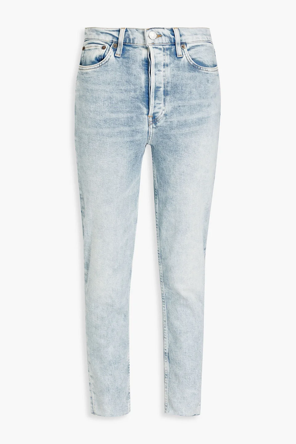 Slim-leg jeans faded denim cropped belt loops high-rise cut multipockets partially concealed button fastenings along front frayed cuffs mid-weight, non-stretchy fabric machine wash or dry clean imported 96% Cotton 3% Polyester 1% Elastane Product Code 1647597303105574