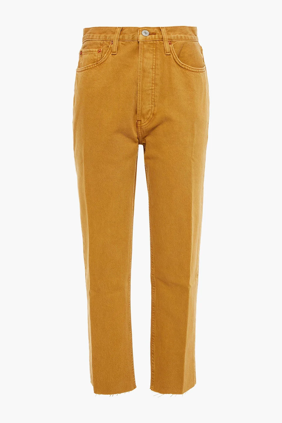 Straight-leg jeans denim multipockets belt loops high-rise cut partially concealed button fastenings along front distressed hem non-stretchy fabric mid-weight fabric machine wash the unique distressing and finish of each re/done style may differ slightly to that pictured 100% Cotton Product Code 29419655932750155