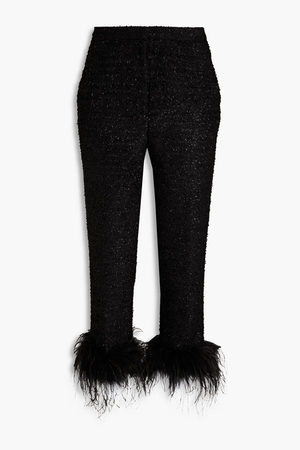 Jourdan cropped feather-trimmed metallic tweed tapered pants