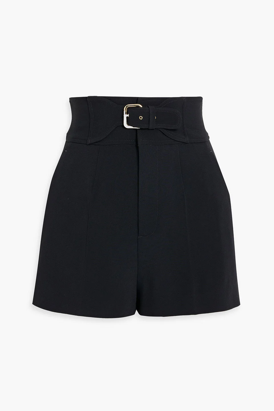 Shorts crepe waist belt two front slant pockets concealed snap, hook and zip fastening at front mid-weight, slightly stretchy fabric with non-stretchy lining dry clean imported 49% Acetate 47% Viscose 4% Elastane Product Code 1647597358549407