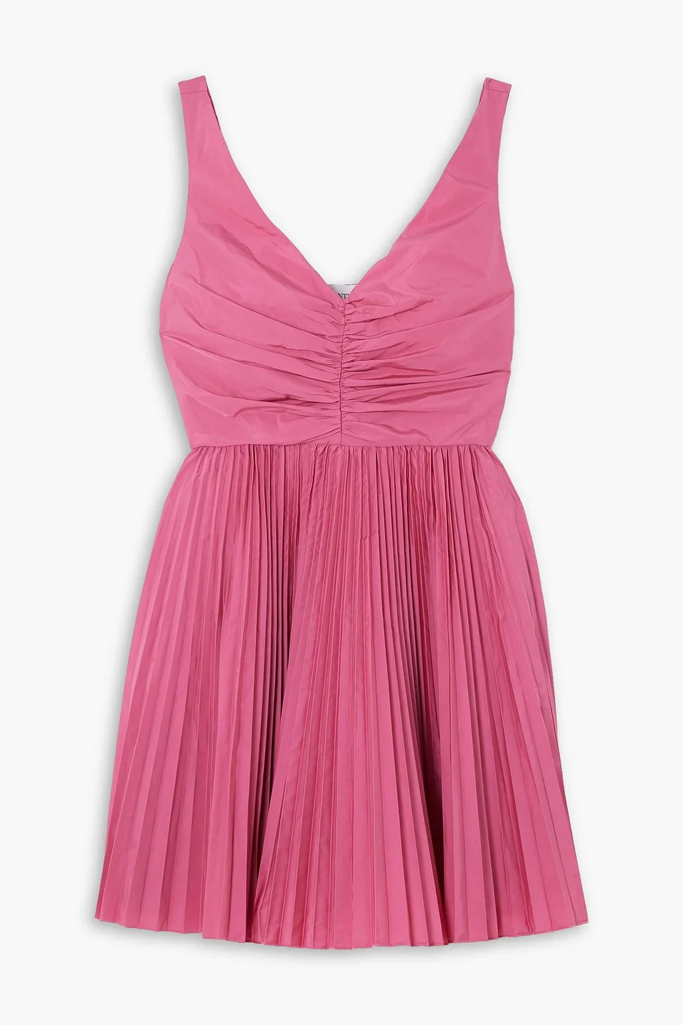 Gathered pleated taffeta mini dress