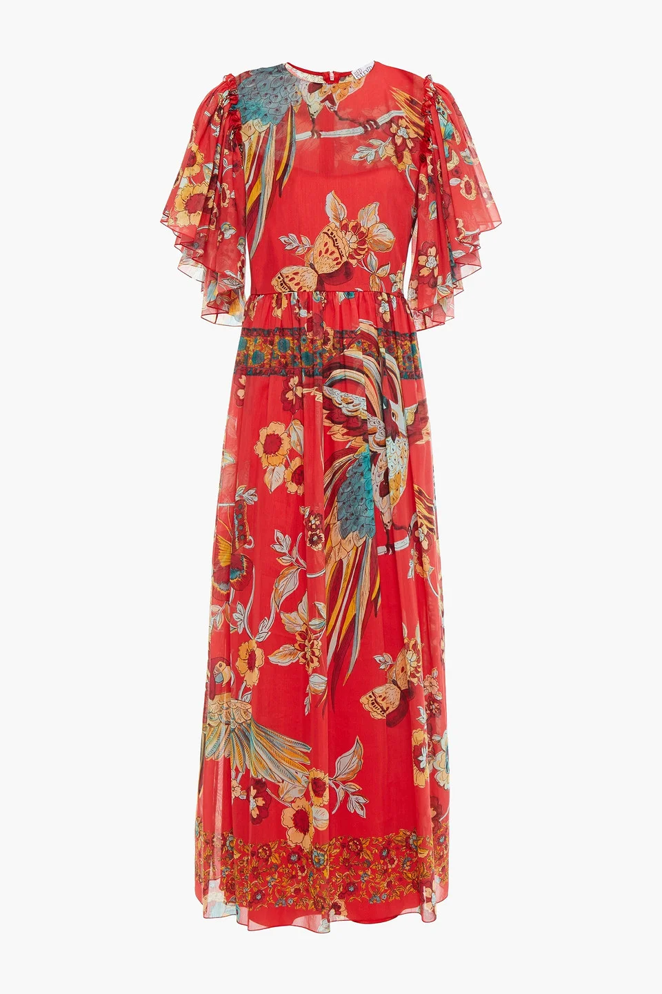 Dress printed voile cotton and silk-blend gathered concealed zip fastening along back detachable slip to line lightweight, non-stretchy fabric dry clean imported 73% Cotton 27% Silk Product Code 17411127376903876
