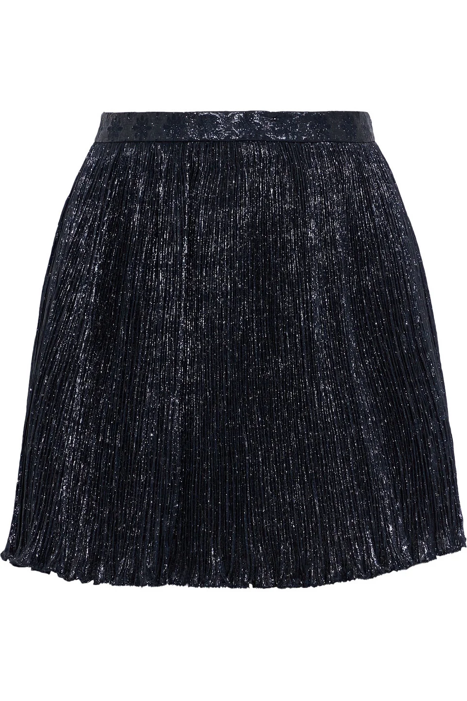 Shorts metallic jacquard plisse skirt-style overlay high-rise cut concealed zip fastening along side non-stretchy fabric mid-weight fabric dry clean imported 36% Polyester 32% Metallic fiber 32% Polyamide Product Code 27086482324523938
