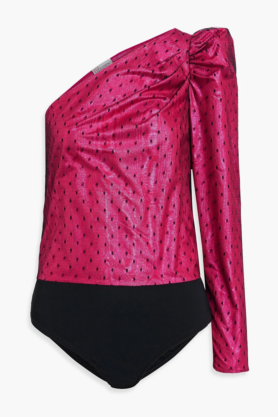 Bodysuit point d'esprit jersey ruched zipped cuffs concealed hook and zip fastening at side snap fastenings at base lightweight, non-stretchy fabric dry clean imported 100% Polyamide Product Code 1647597358490335