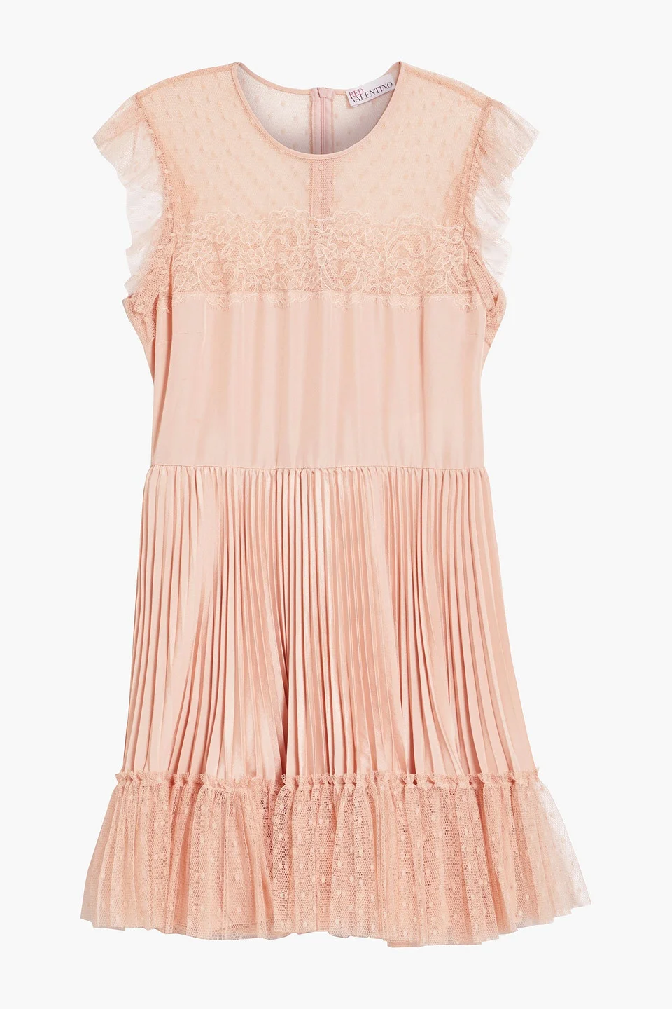 Dress point d'esprit crepe pleated paneled concealed zip fastening along back non-stretchy fabric mid-weight fabric dry clean imported 100% Polyester Product Code 43769801097857532