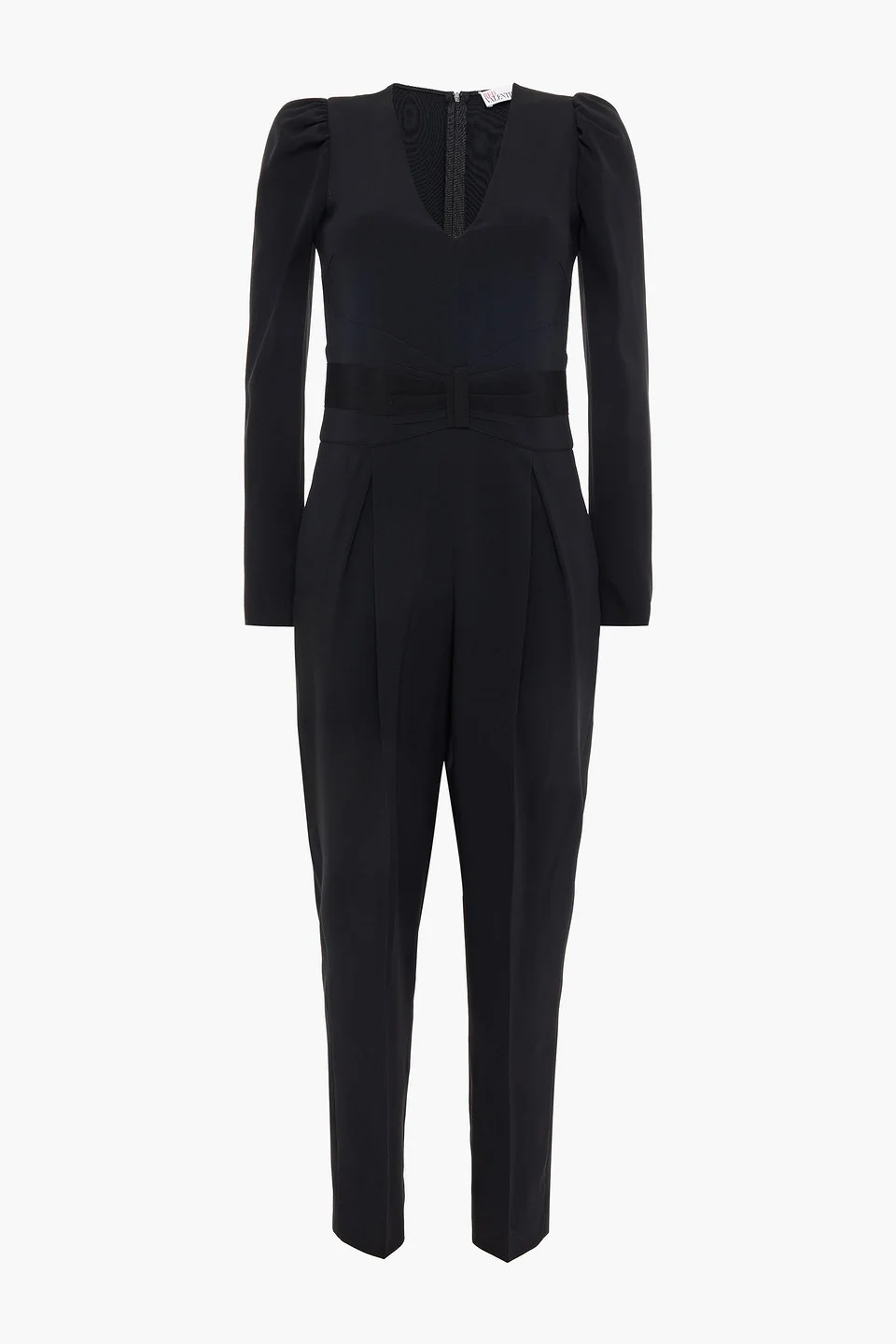 Jumpsuit stretch-crepe pleated grosgrain trims gathered sleeves two back welt pockets two side slant pockets concealed zip fastening along back stretchy fabric mid-weight fabric dry clean imported 49% Acetate 47% Viscose 4% Elastane Product Code 24772899113352005