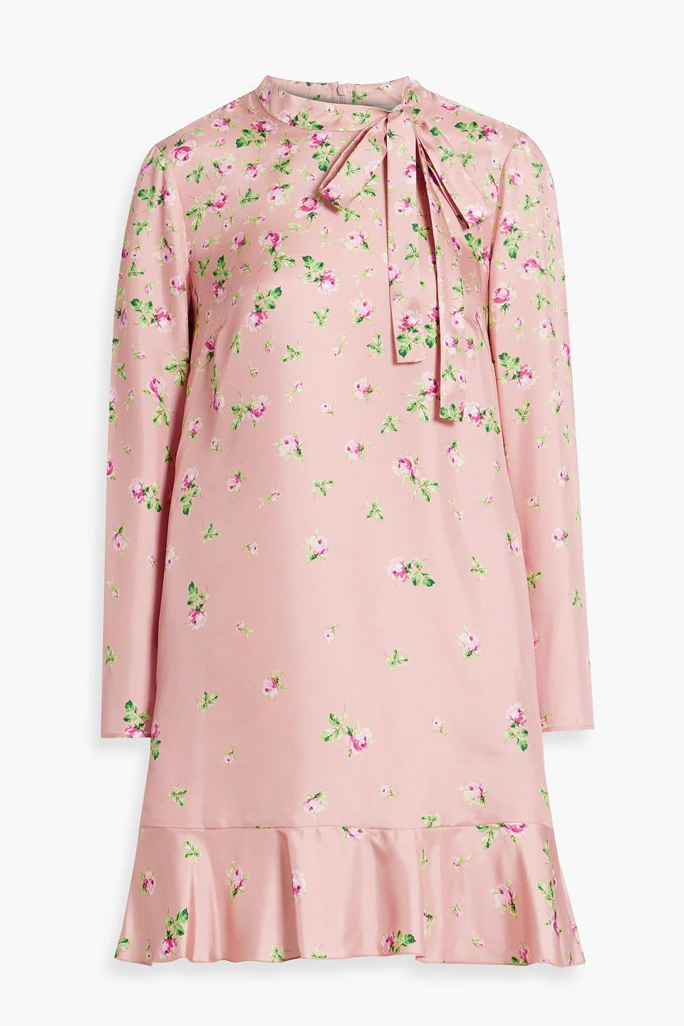 Pussy-bow floral-print silk-twill mini dress