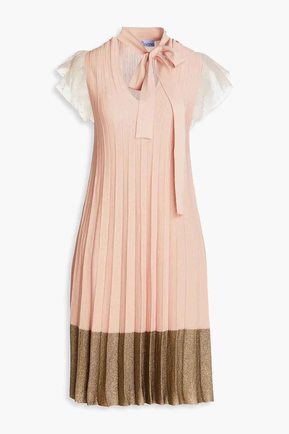 Dress metallic pleated cotton-blend point d'esprit trims pussy-bow slips on lightweight knit hand wash or dry clean made in italy 70% Cotton 23% Viscose 7% Polyester Product Code 1647597317643706