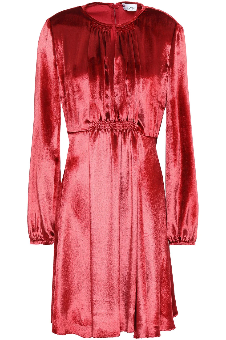 Dress velvet shirred elasticated cuffs concealed zip fastening along back button-fastening keyhole at front mid-weight, non-stretchy fabric dry clean imported 85% Viscose 15% Silk Product Code 547799495872677