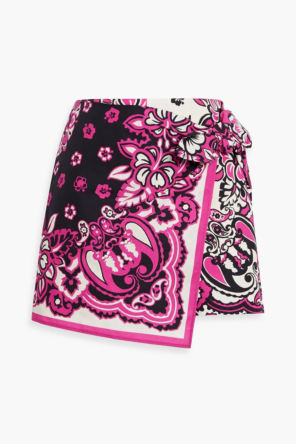 Shorts floral-print cotton-broadcloth skirt-style overlay bow-detailed high-rise cut two side slit pockets two back welt pockets concealed hook and zip fastening at back lightweight, non-stretchy fabric dry clean imported 100% Cotton Product Code 1647597358193429