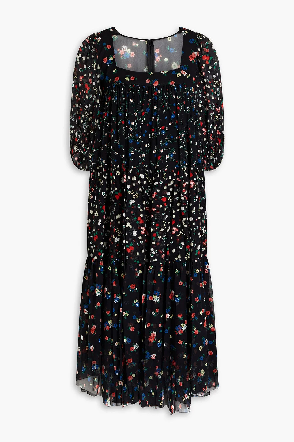 Dress floral-print georgette tiered puffed sleeves concealed hook and zip fastening at back slip to line lightweight, non-stretchy fabric dry clean made in italy 100% Polyester Product Code 1647597331020724