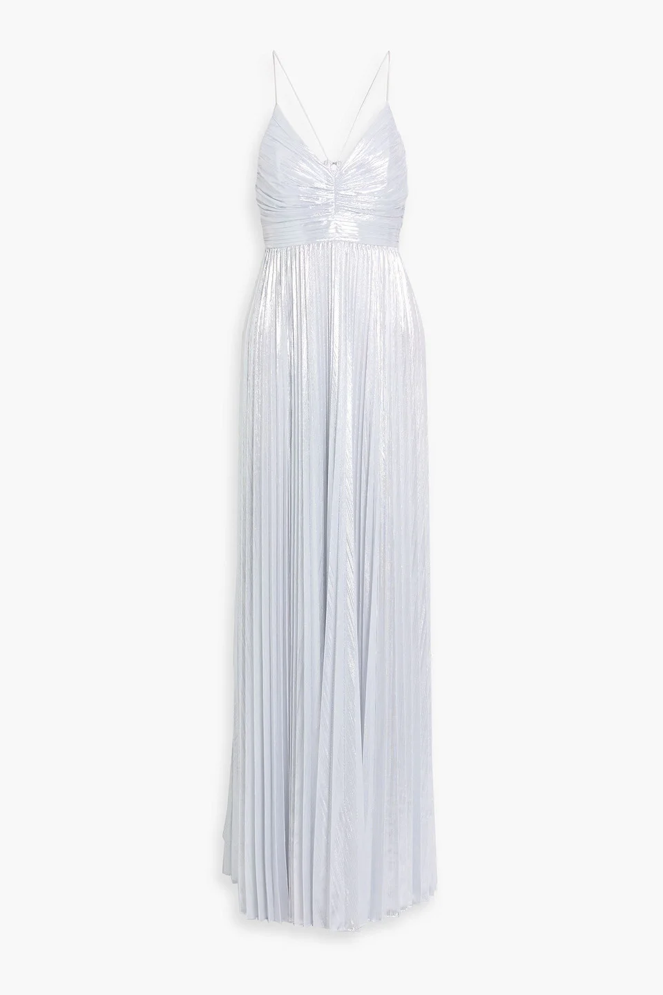 Dress lame pleated front slit concealed hook and zip fastening at back fully lined mid-weight, slightly stretchy fabric dry clean imported 95% Polyester 5% Spandex Product Code 46376663163007912