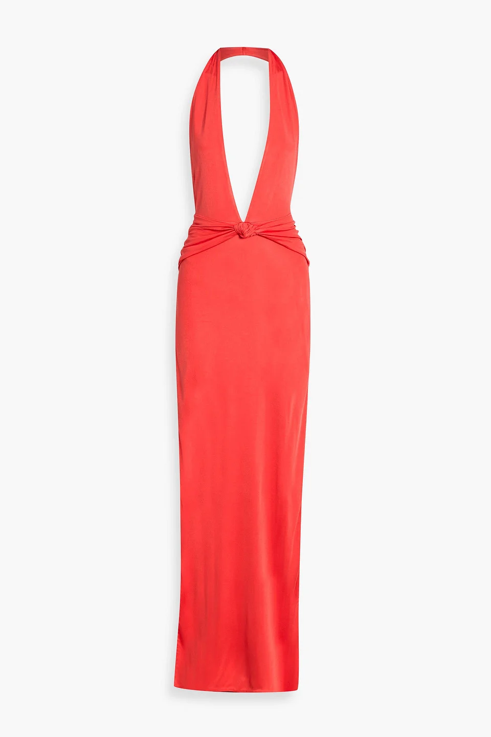 Dress jersey open back knotted side slit concealed hook and zip fastening at back built-in bodysuit mid-weight, slightly stretchy fabric dry clean imported 100% Viscose Product Code 46376663163082932