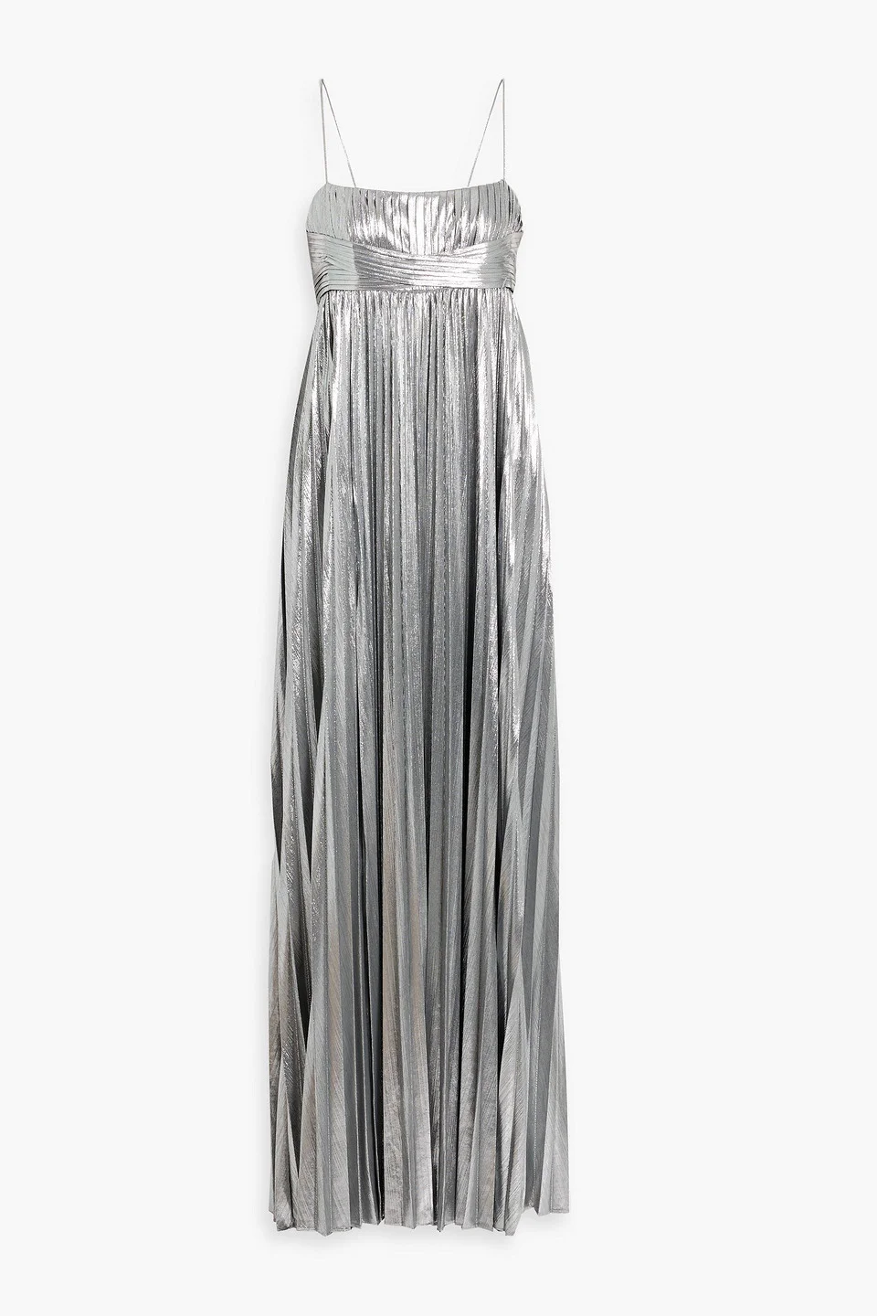 Dress lame pleated front slit zip fastening along back partially lined mid-weight, slightly stretchy fabric hand wash imported 95% Polyester 5% Spandex Product Code 46376663163007908