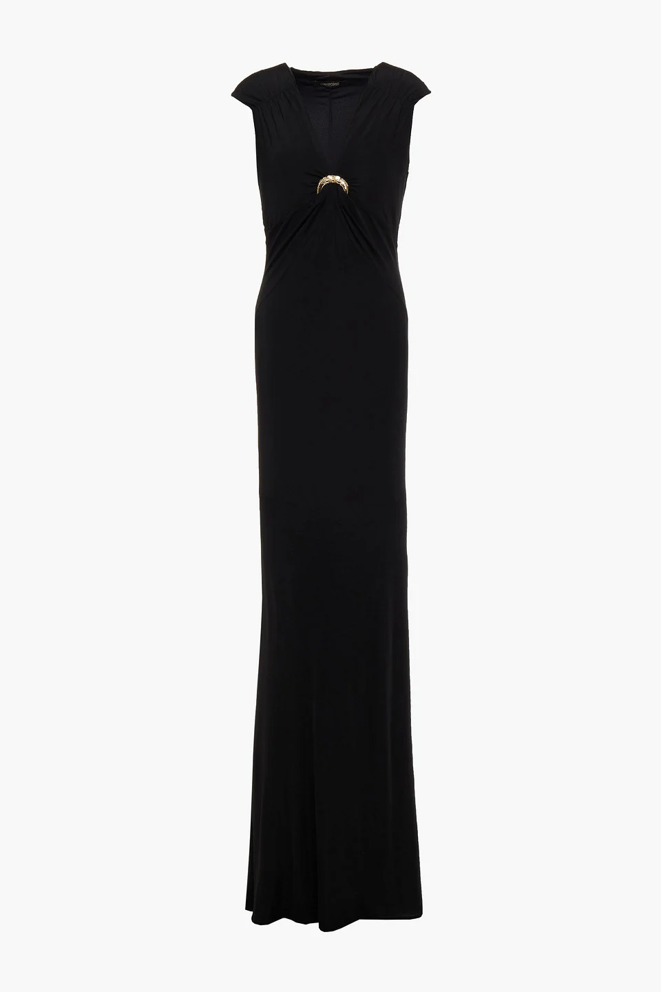 Appliquéd ruched stretch-jersey maxi dress