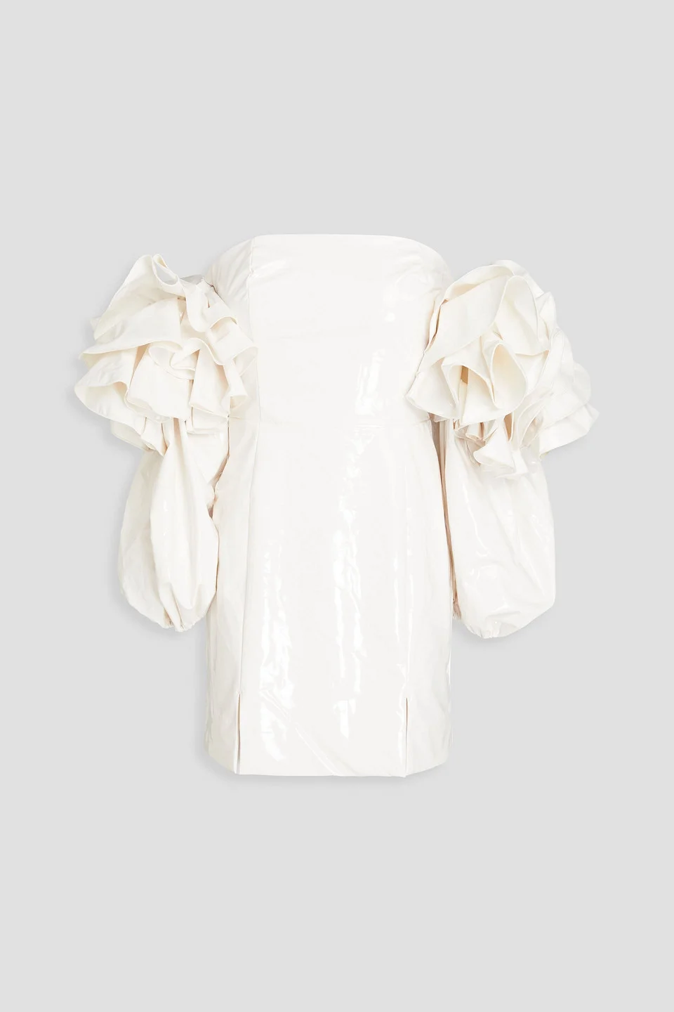 Bethany off-the-shoulder ruffled vinyl mini dress