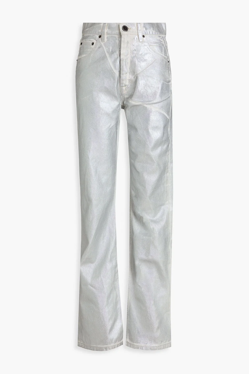 Straight-leg jeans metallic denim coated belt loops high-rise cut five pockets button and concealed zip fastening at front mid-weight, non-stretchy fabric dry clean imported 100% Organic Cotton Product Code 1647597356809064