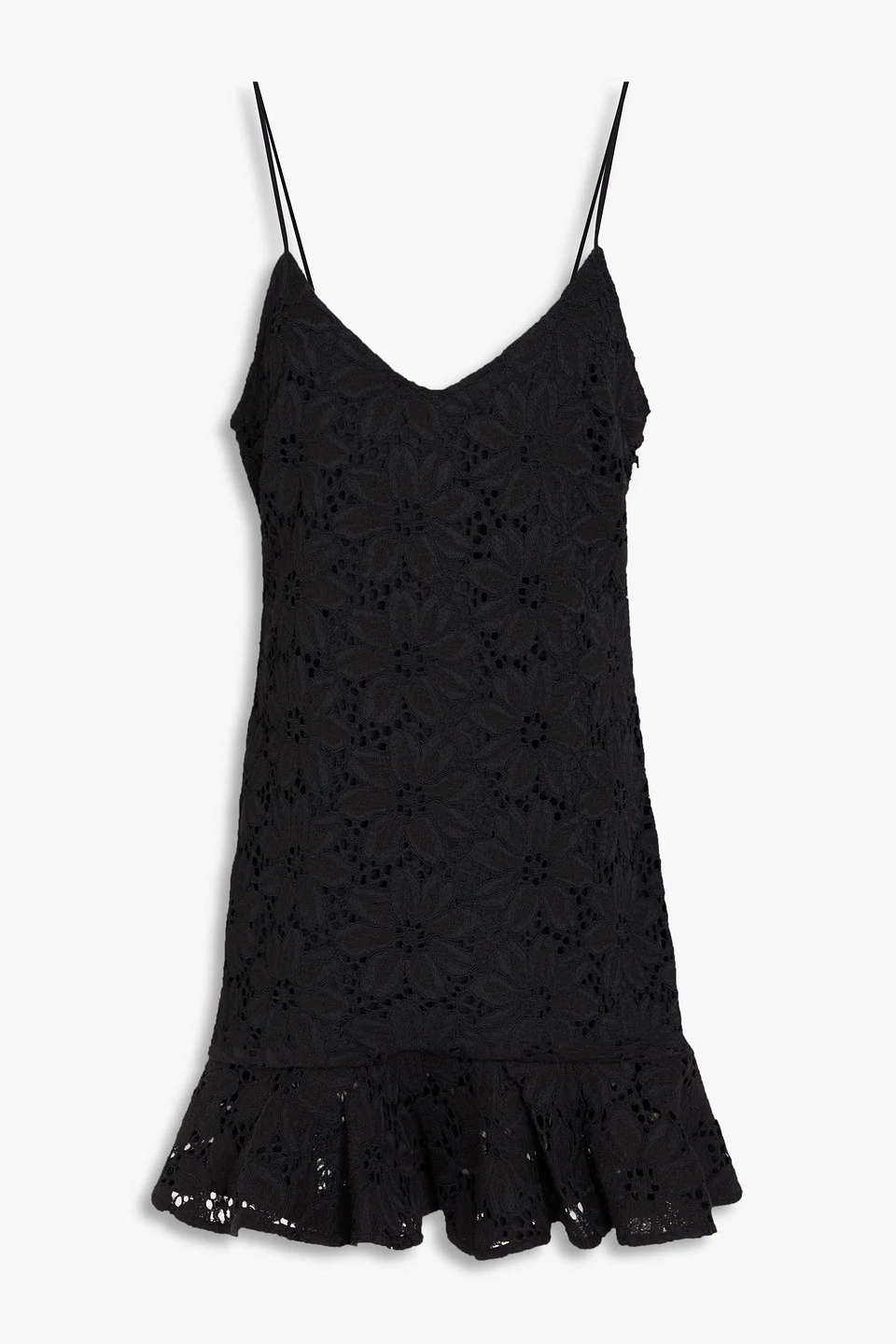 Dress corded lace adjustable straps ruffled hem concealed hook and zip fastening at side fully lined mid-weight, non-stretchy fabric hand wash or dry clean imported 72% Polyamide 28% Cotton Product Code 1647597347089470