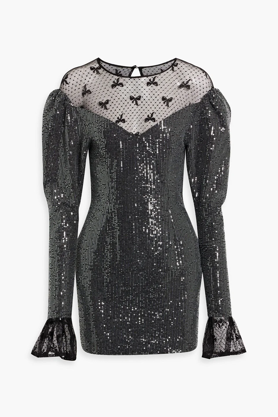 Dress point d'esprit cotton embroidered sequins paneled ruffled cuffs concealed hook and zip fastening at back button-fastening keyhole at back fully lined mid-weight, non-stretchy fabric dry clean imported 100% Cotton Product Code 1647597358129015