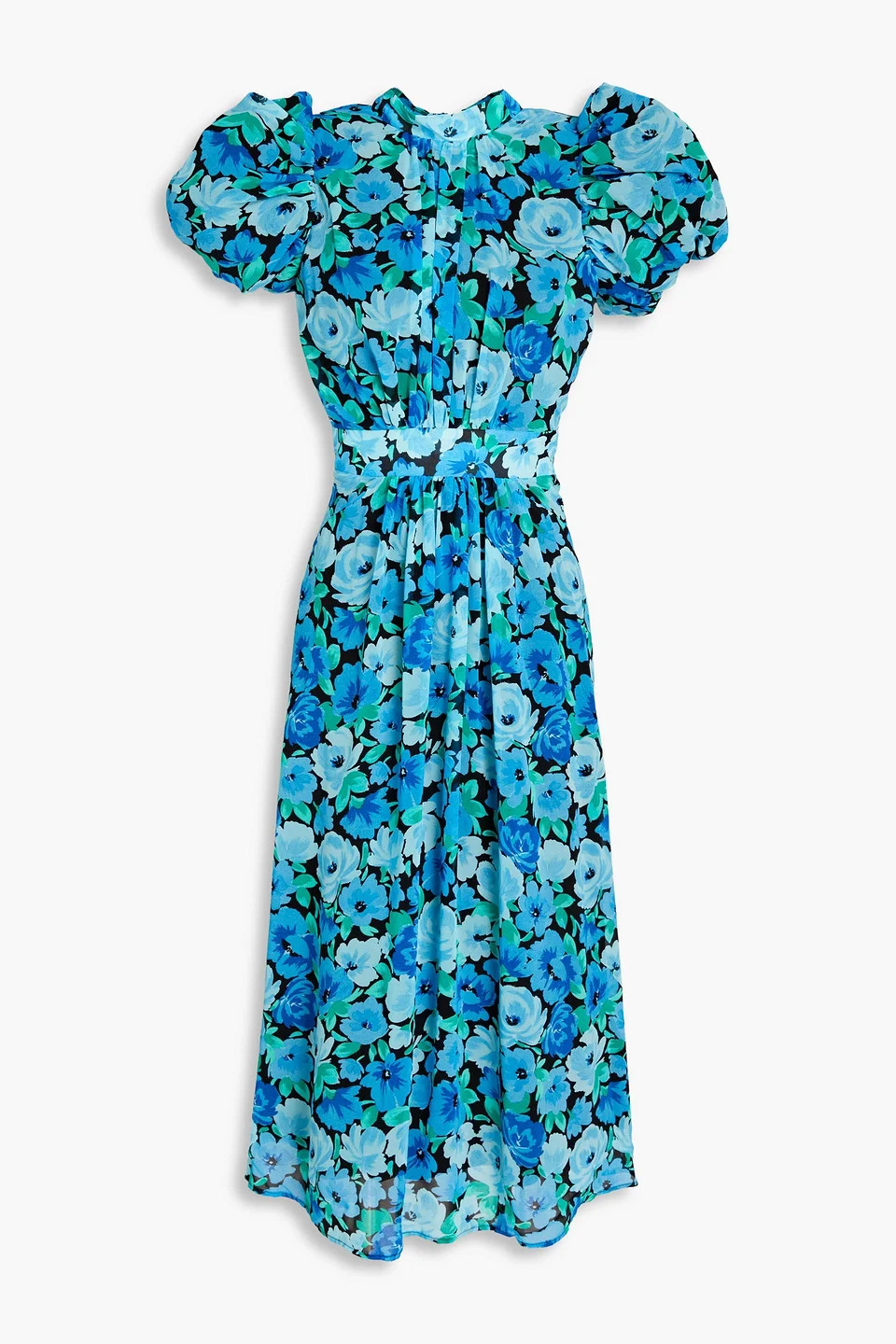 Dress floral-print chiffon gathered shirred puffed sleeves elasticated cuffs ties at back fully lined non-stretchy fabric mid-weight fabric dry clean imported 100% Recycled polyester Product Code 1647597332467736