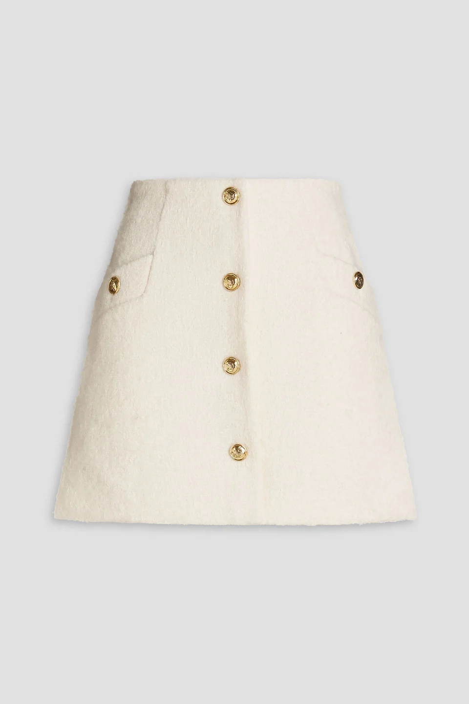 Skirt tweed button-embellished front slant pockets fully lined concealed zip fastening along side mid-weight, non-stretchy fabric dry clean imported 41% Cotton 23% Wool 17% Textile fibers 12% Polyester 7% Alpaca wool Product Code 1647597349170304
