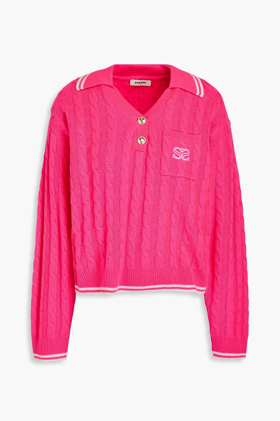 Sweater cable-knit wool and cashmere-blend button-embellished embroidered logo ribbed trims slips on mid-weight knit hand wash or dry clean imported 91% Wool 9% Cashmere Product Code 1647597336730757