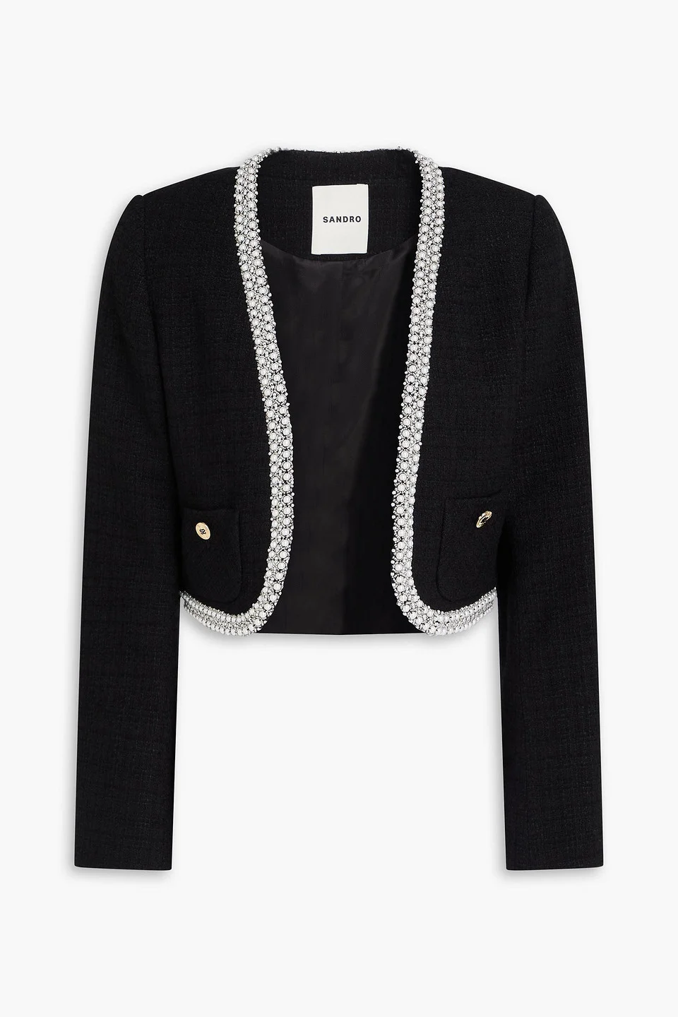 Jacket cotton-blend tweed beads cropped open front front patch pockets slips on fully lined mid-weight, non-stretchy fabric dry clean imported 50% Cotton 25% Viscose 19% Acrylic 6% Polyamide Product Code 46376663162957702