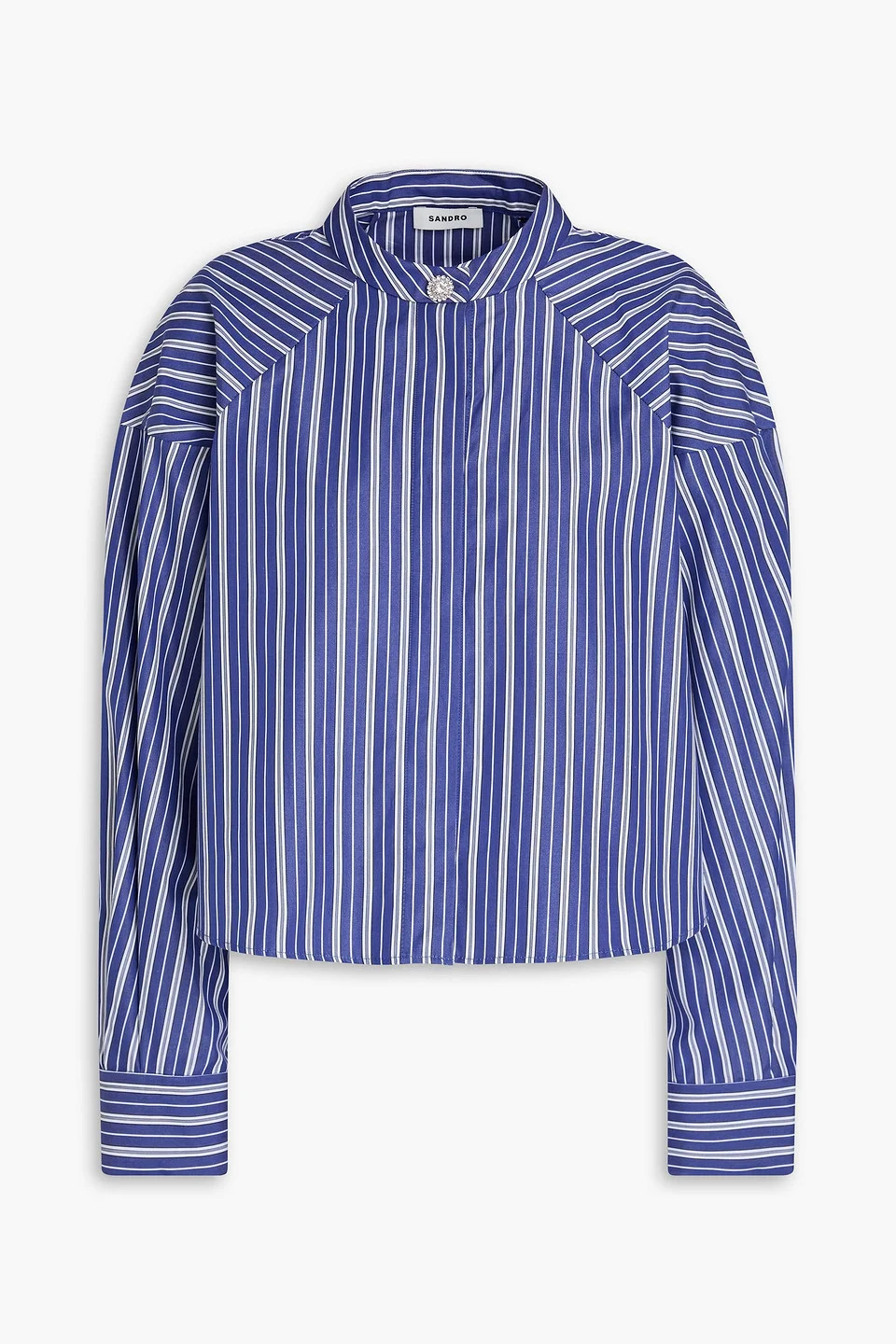 Shirt striped cotton-poplin crystal buttons cropped buttoned cuffs concealed button fastenings through front snap fastening at neck mid-weight, non-stretchy fabric machine wash or dry clean imported 100% Cotton Product Code 46376663162952439