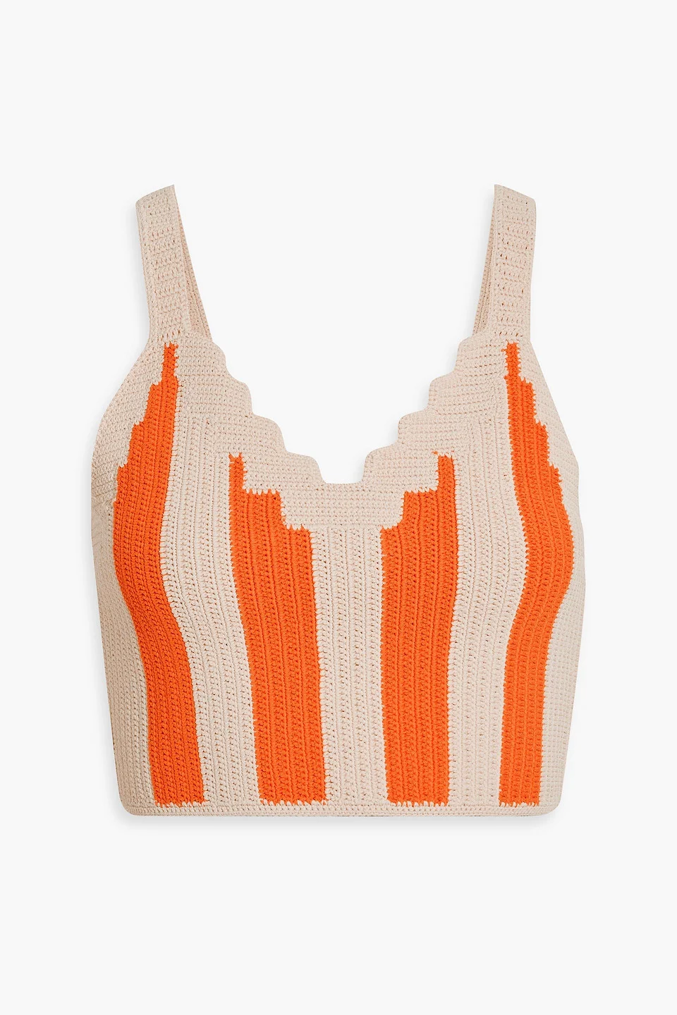 Top striped crochet scalloped trims cropped slips on mid-weight knit hand wash imported 62% Viscose 38% Polyester Product Code 1647597336429929
