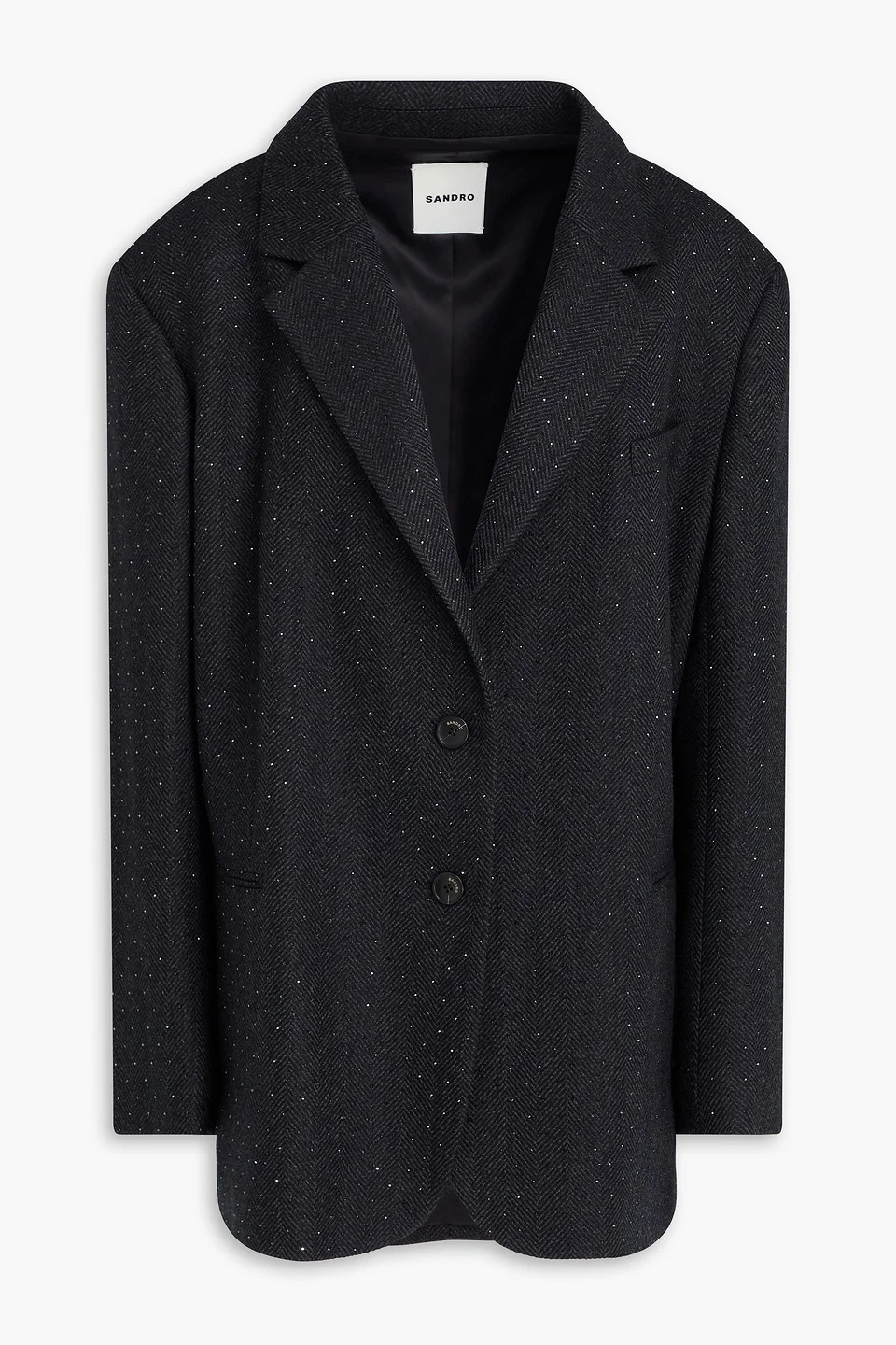 Blazer herringbone wool-flannel crystals shoulder pads buttoned cuffs front welt pockets breast pocket button fastenings through front fully lined dual back vents mid-weight, non-stretchy fabric dry clean imported 100% Wool Product Code 46376663162957742