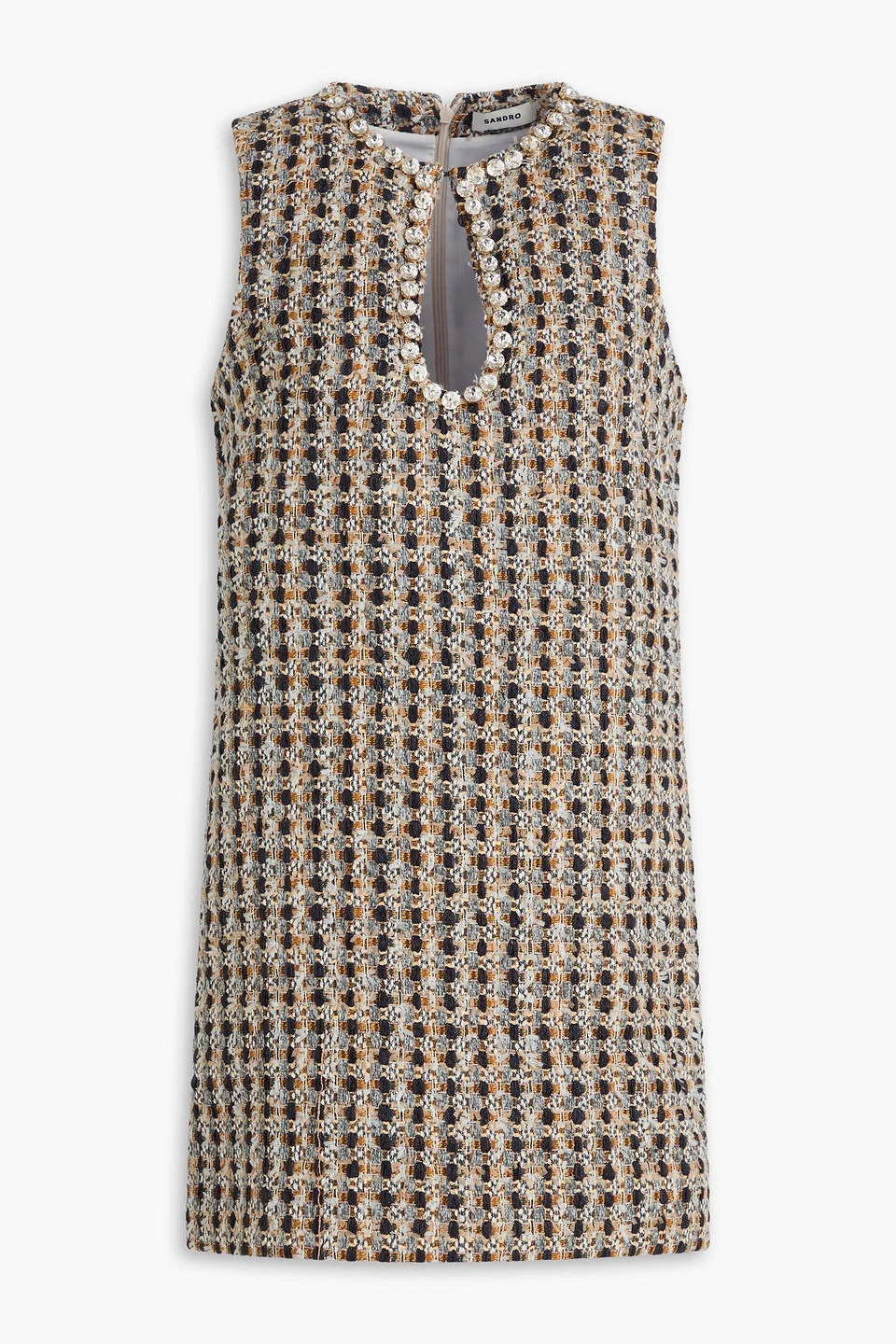 Dress metallic tweed crystals concealed zip fastening along back hook-fastening keyhole at front fully lined mid-weight, non-stretchy fabric dry clean made in italy 84% Polyester 8% Acrylic 7% Polyamide 1% Other Fibres Product Code 46376663162957084