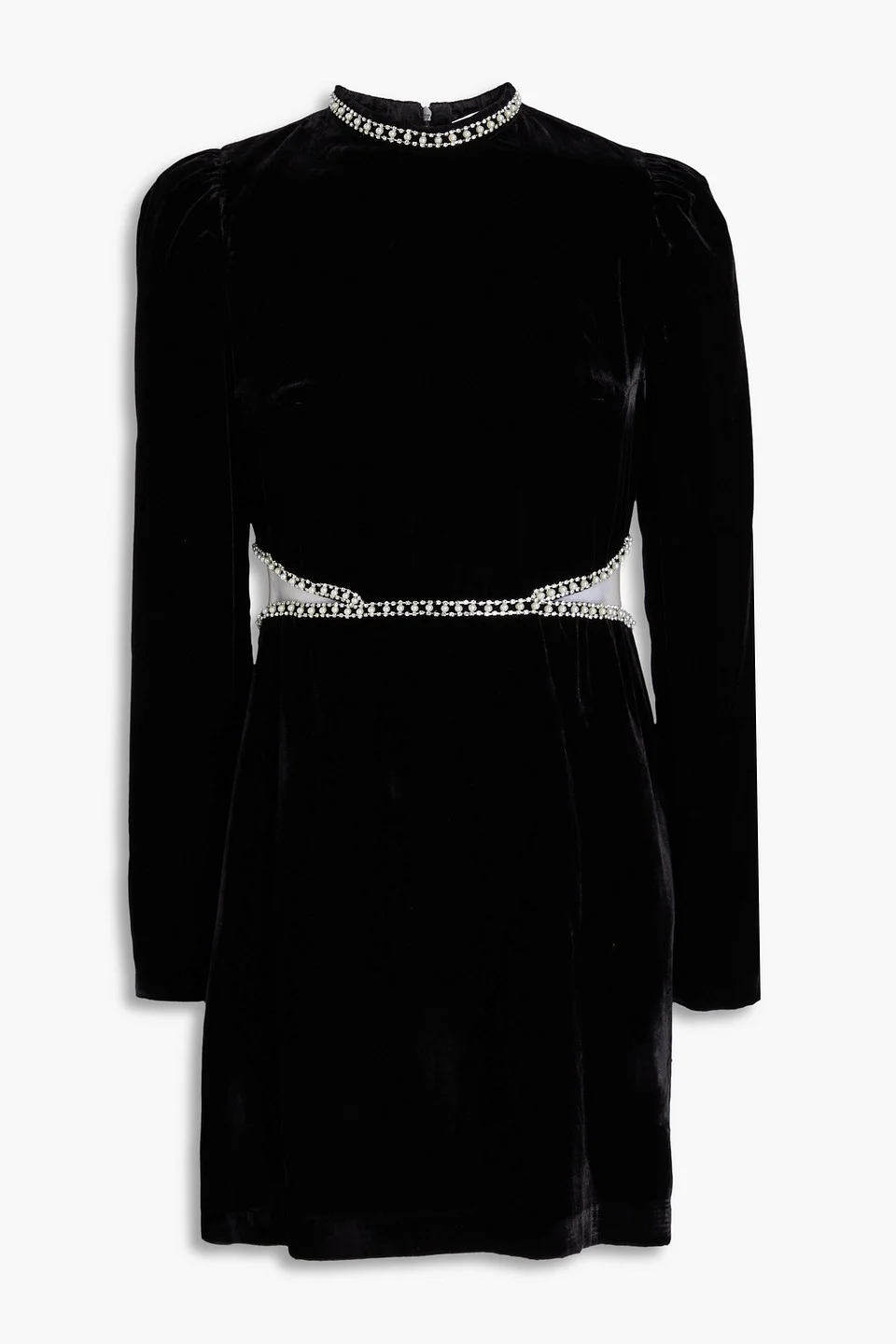 Embellished tulle-trimmed velvet mini dress