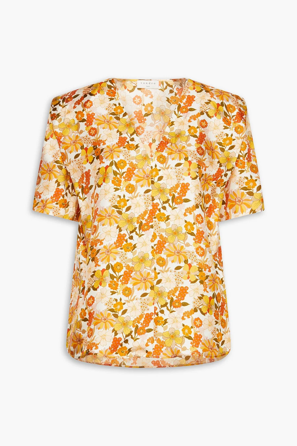 Blouse floral-print silk-twill shoulder pads slips on mid-weight, non-stretchy fabric dry clean imported 100% Silk Product Code 1647597290350073