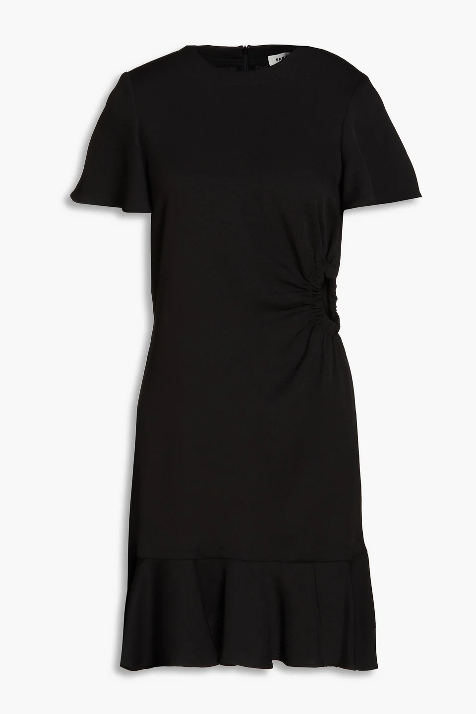 Gathered cutout grain de poudre mini dress