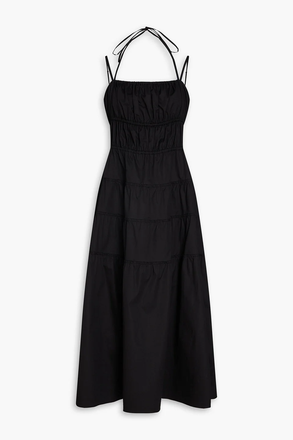 Dress stretch-cotton poplin gathered adjustable straps slips on ties at neck mid-weight, stretchy fabric machine wash or dry clean imported 97% Cotton 3% Elastane Product Code 46376663162846733