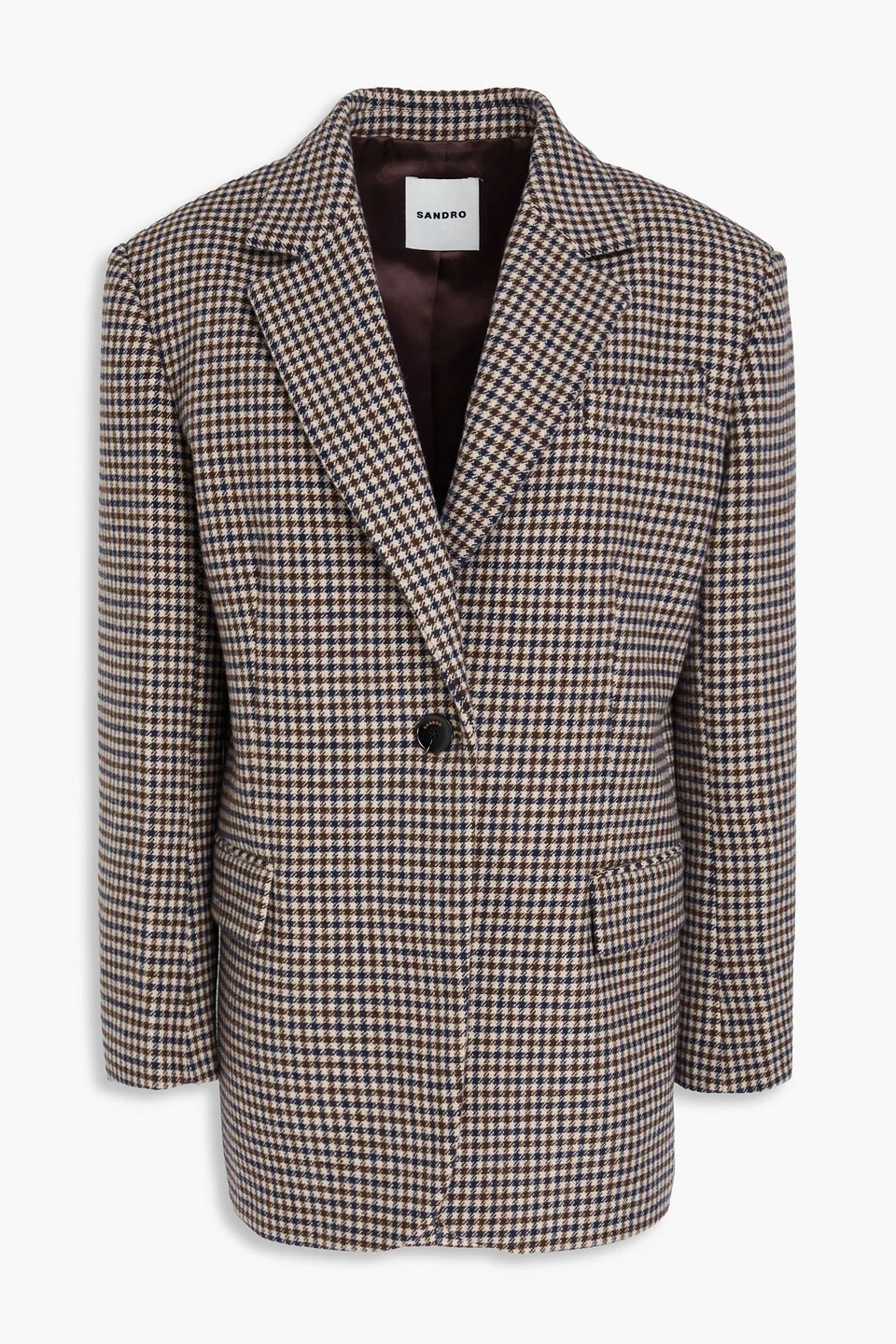 Blazer houndstooth wool-blend tweed shoulder pads breast pocket front flap pockets button fastening at front fully lined back vent mid-weight, non-stretchy fabric dry clean imported 70% Wool 15% Polyester 10% Polyamide 5% Other Fibres Product Code 46376663162957732